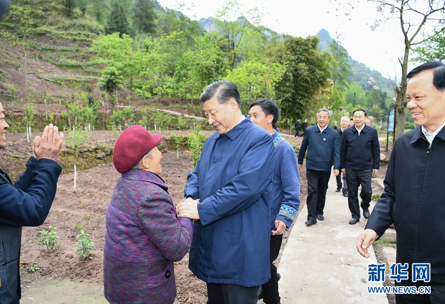 這是4月15日下午,習近平在石柱土家族自治縣中益鄉華溪村看望貧困戶譚登周一家。 新華社記者 劉彬 攝