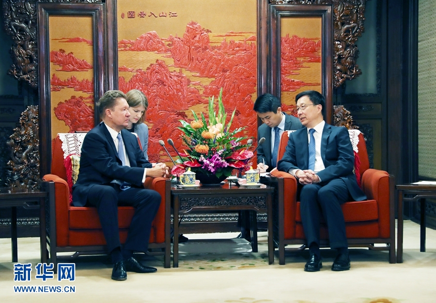 新華社北京9月4日電(記者楊依軍)中共中央政治局常委、國務院副總理韓正3日在中南海紫光閣會見俄羅斯天然氣工業公司總裁米勒。
