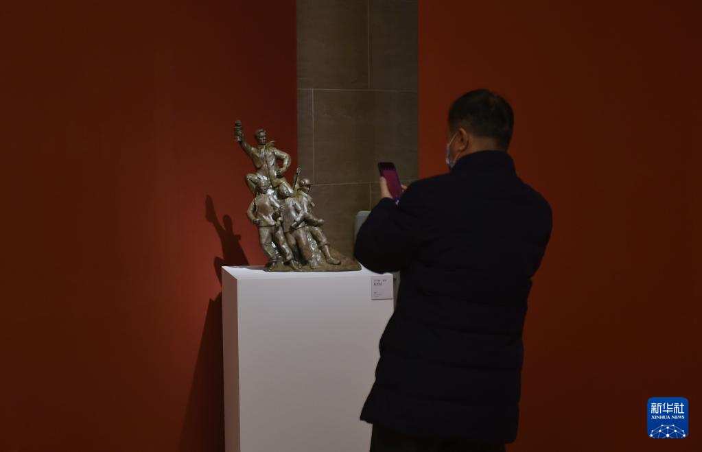 1月22日,參觀者在中國美術館拍攝“美在致廣——全國小幅美術精品展”中的展出作品《紅燈記》。新華社記者 魯鵬 攝