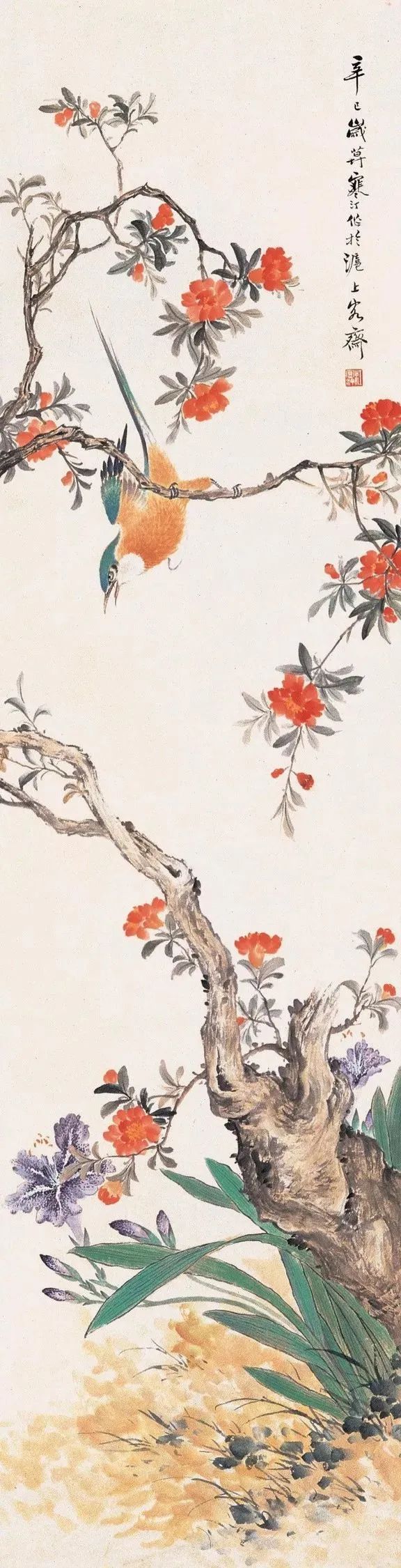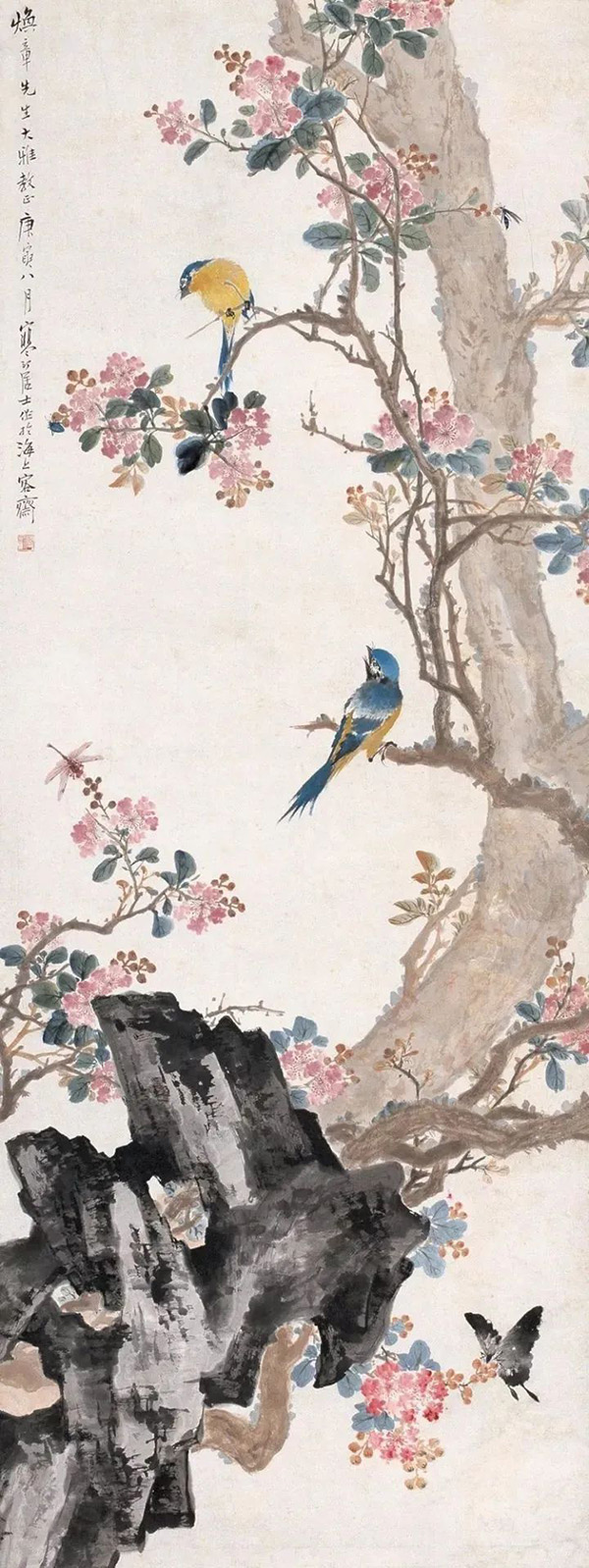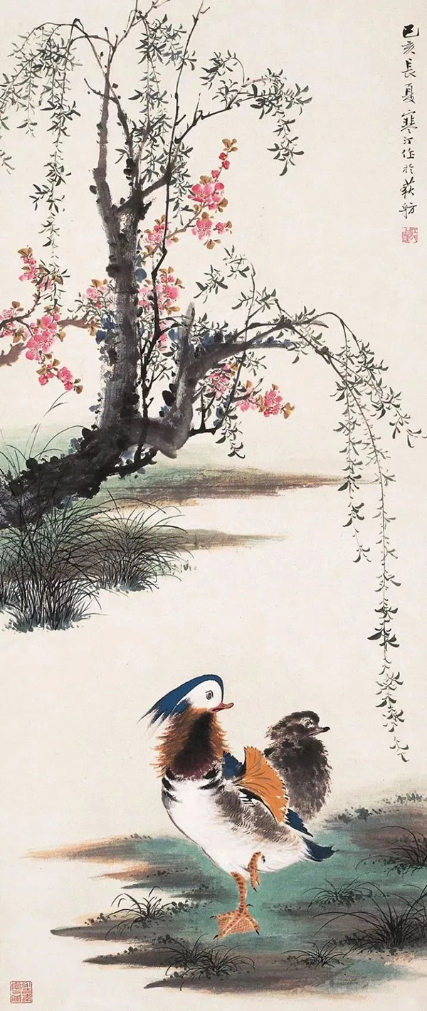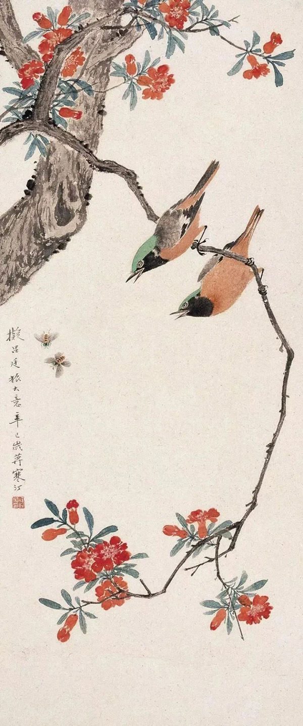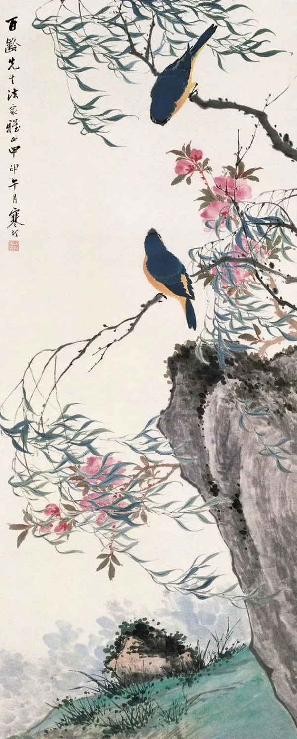 江寒汀自小縱觀宋、元名跡,悟其謹嚴、放縱之情,對雙鉤填彩、沒骨寫生均擅長,尤其描繪各種禽鳥,獨開生面,堪稱絕技。江寒汀為了更好地掌握鳥的特點和造型,在家中養有許多鳥類,長期觀察寫生,終于寫成20余丈長卷《百鳥圖》傳世名作,成為花鳥畫史上的美談。張大千曾贊譽:“寒汀筆下鳥,天下到處飛?!?/p>