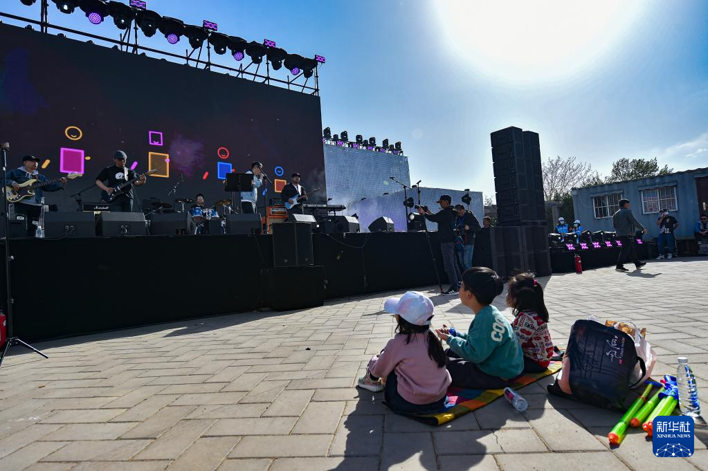 4月15日,游客在“2023下苑藝術生活季”活動現場觀看樂隊演出。