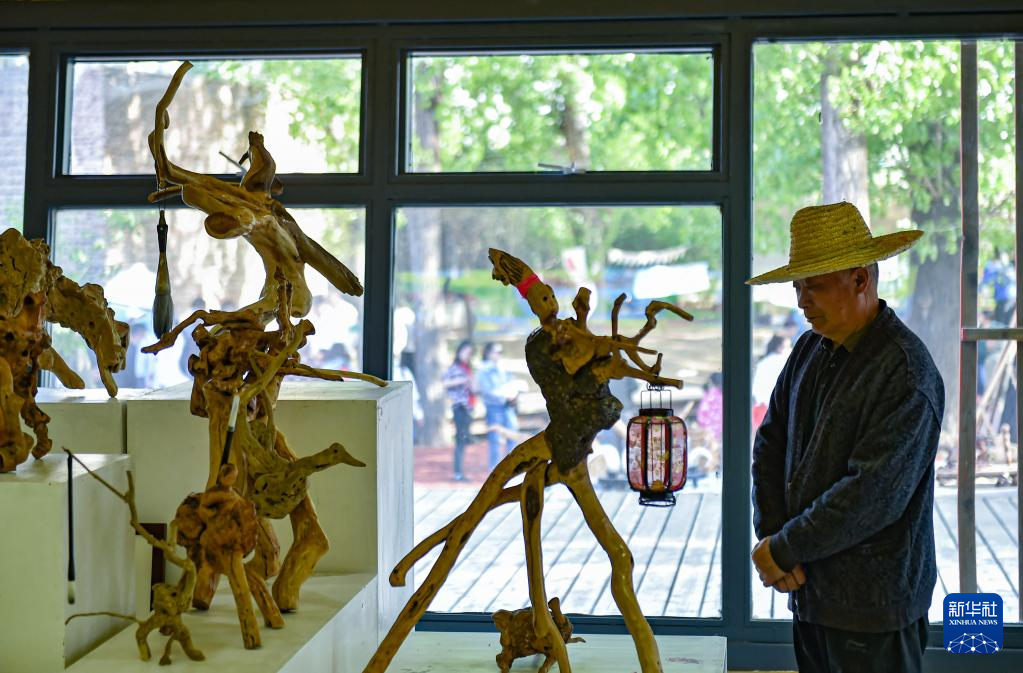 這是4月15日拍攝的“2023下苑藝術生活季”活動現場的一個雕塑作品。