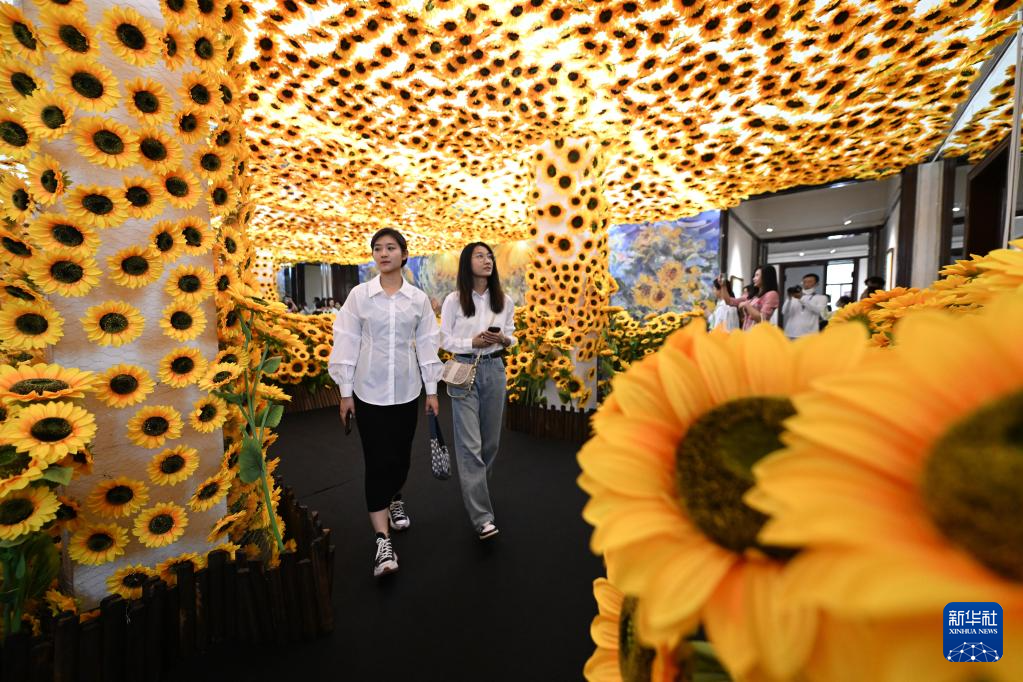 5月16日,觀眾在天津數字藝術博物館“梵高的世界”全景數字藝術互動大展預展上參觀。