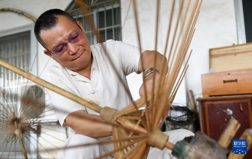 陸云崗家住廣西賓陽縣賓州鎮陸村,是廣西非物質文化遺產賓陽油紙傘制作技藝傳承人。油紙傘制作技藝在賓陽縣傳承已超過300年,陸云崗家幾代都是制傘手藝人。從砍竹子到成品,一把油紙傘前后要經過120多道工序,從頭到尾要3天才能完成。陸云崗說,就是在這樣精細的制作打磨中,每一件產品擁有了手藝人心手相傳、代代不絕的溫度。