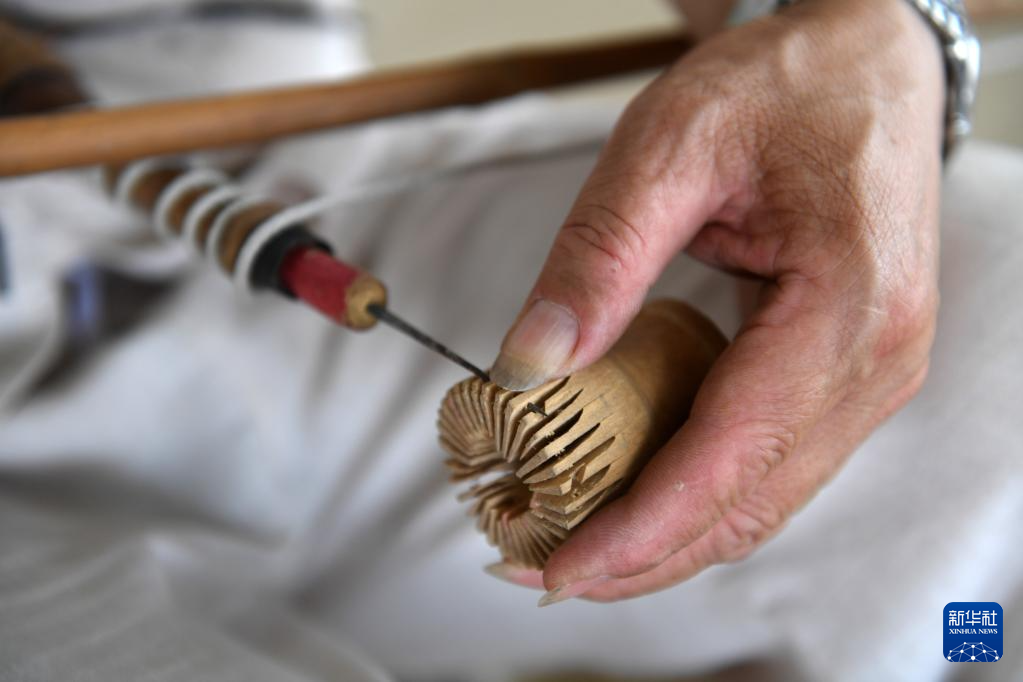 6月1日,在廣西賓陽縣賓州鎮陸村,陸云崗在給木頭打孔準備制作油紙傘。