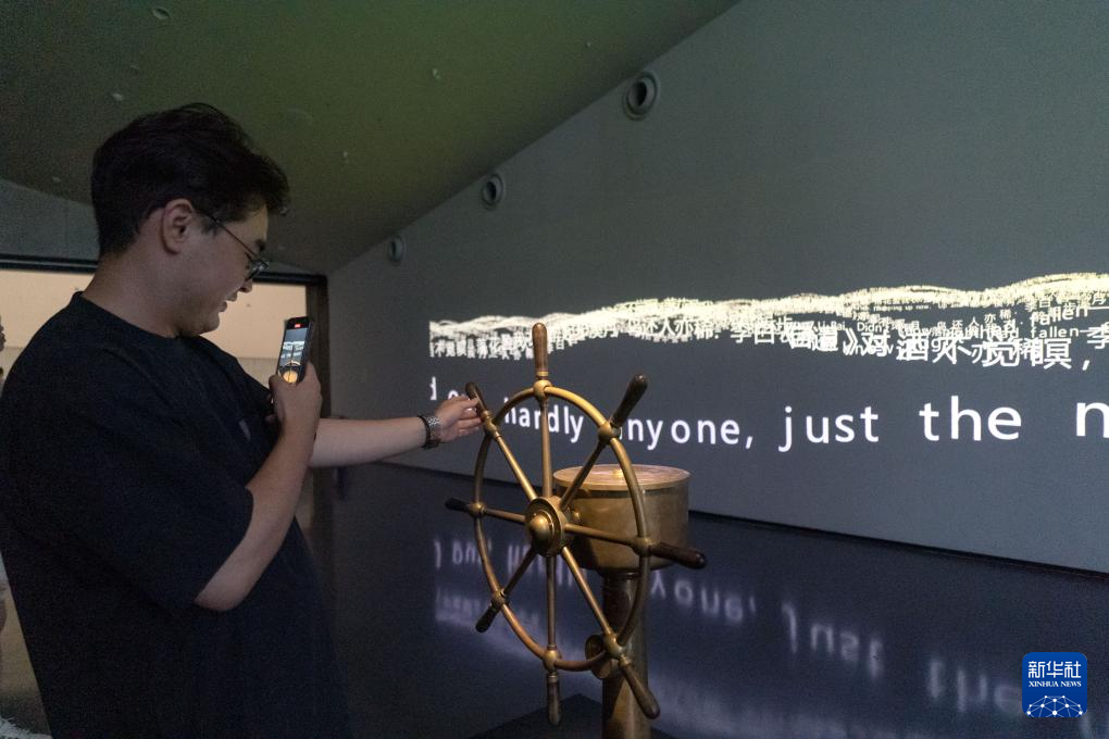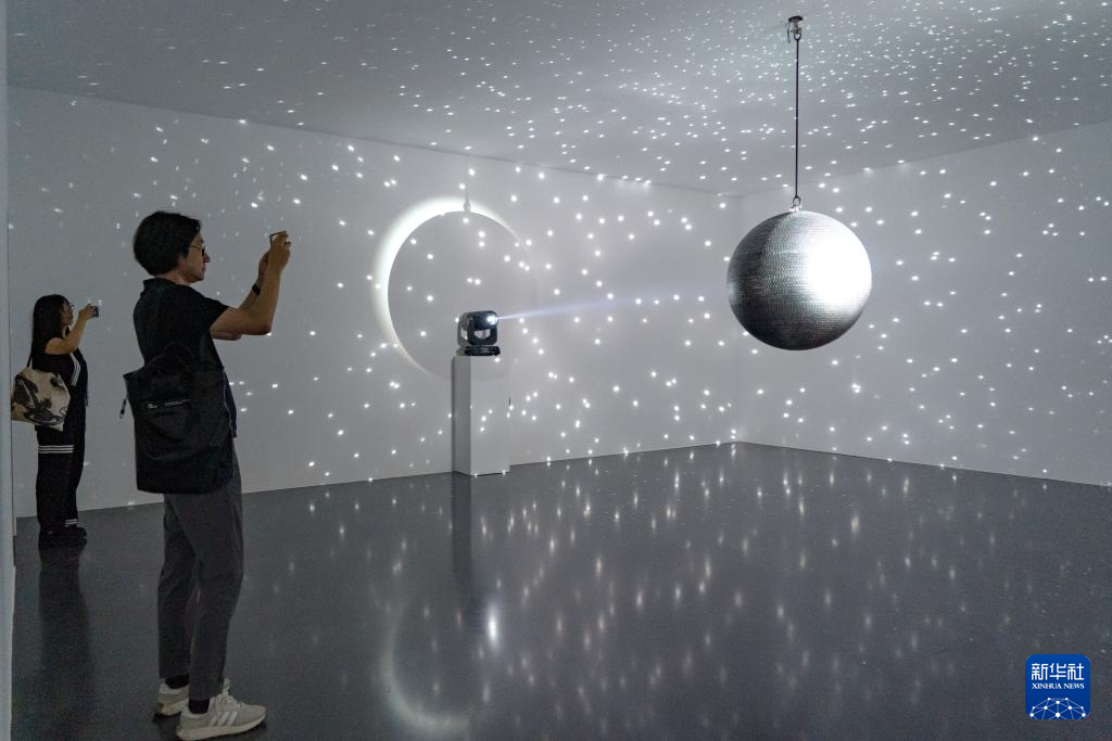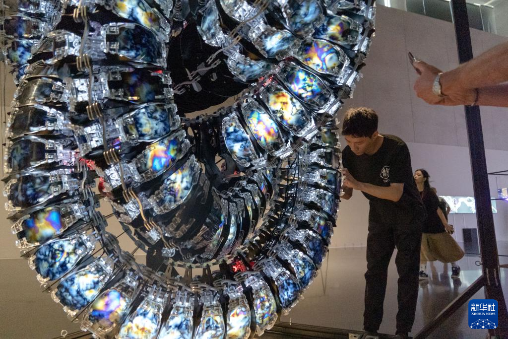 7月16日,在成都市美術館,觀眾體驗、拍攝展品。