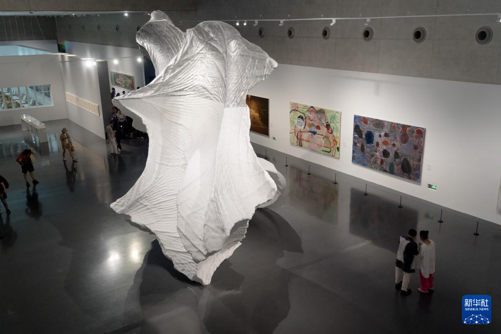 這是7月16日在成都市美術館拍攝的雙年展展廳。