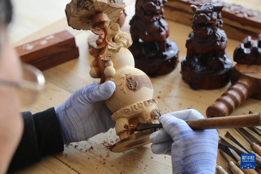 山東省濱州市沾化區大高鎮發揮棗木資源優勢,將木藝產業與非遺、創意設計有效融合,利用廢棄棗木創作生產鎮尺、手杖等棗木藝術品,打造木雕特色產業,助推當地經濟發展。