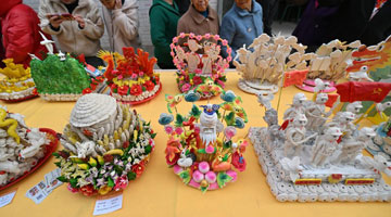 3月26日,在山東省濱州市沾化區大高鎮棗木雕刻工坊內,木雕藝人崔樹曾給學生們展示如何手工雕刻藝術品。