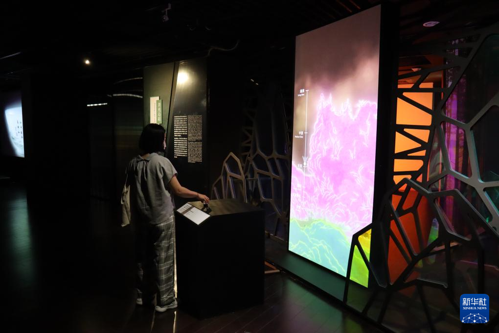 4月2日,觀眾通過互動裝置近距離、多角度觀賞肉形石。新華社記者 齊菲 攝