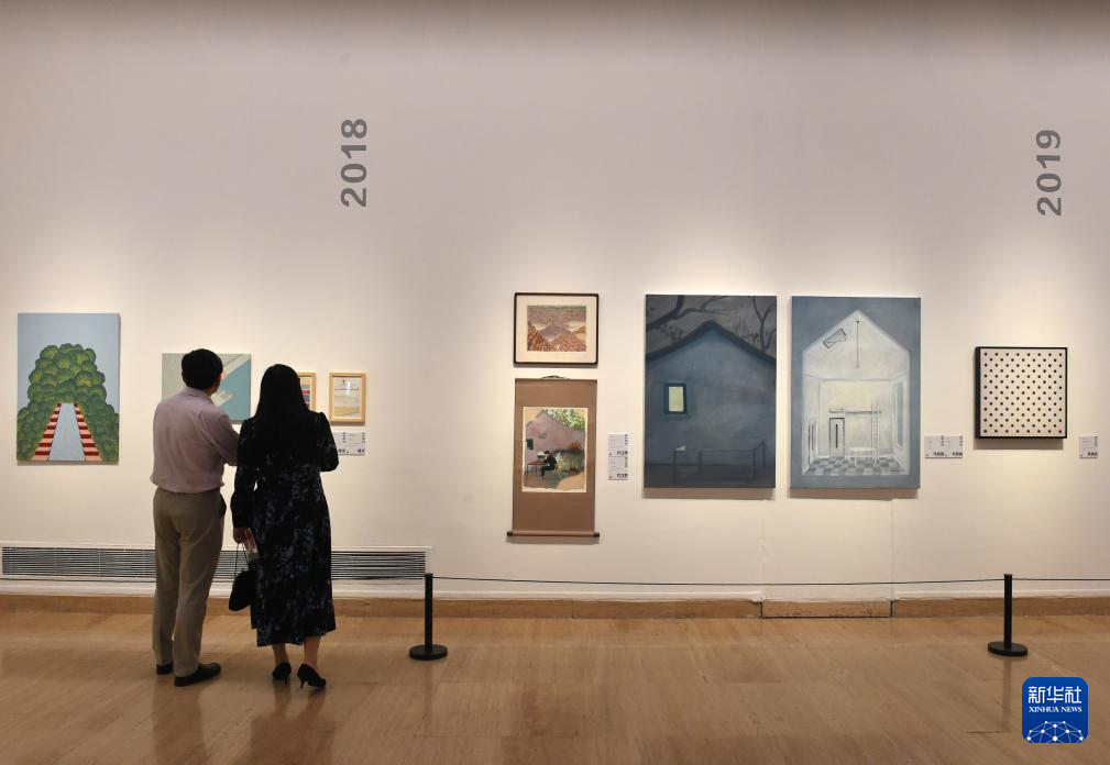 4月20日,觀眾在中國美術館觀看“藝術8——青年藝術家聯展”。