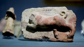 10月25日,兩名游客在波蘭華沙現代藝術博物館新館中的一處雕塑前留影。