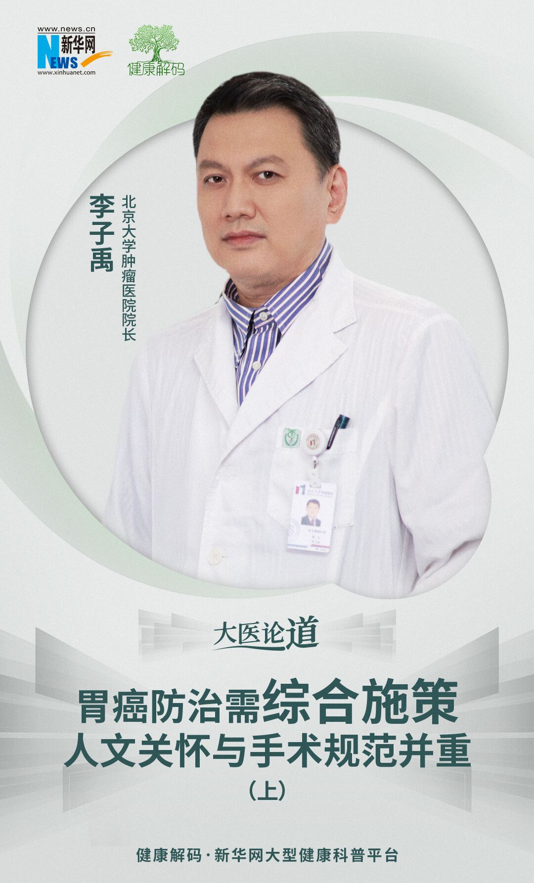 北京大學腫瘤醫院院長、黨委副書記、胃腸腫瘤中心主任醫師、中國抗癌協會副理事長李子禹做客新華網《大醫論道》欄目