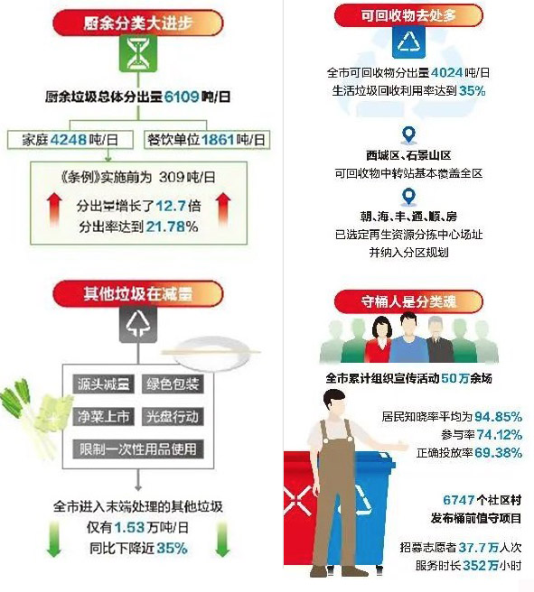 ??? 2020年5月起,《北京市生活垃圾管理條例》正式實施,標志著生活垃圾全程分類管理進入了依法加速推進的新階段?!稐l例》實施大半年后,北京多數小區生活垃圾分類情況均有所改善。