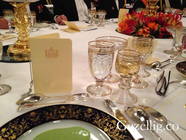 最后再來展示下國宴的餐具,每一件都是古董,每件上都有皇室的印記,細數一下,本次餐具一共有6件刀叉勺子,都是按照菜的順序擺放的。(圖片來源:荷蘭聯合時報)