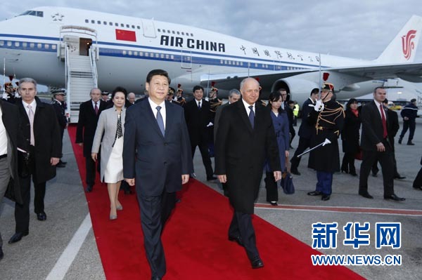 習近平抵達里昂開始對法國進行國事訪問