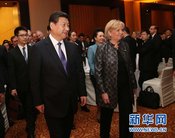 ??? 3月29日,國家主席習近平在杜塞爾多夫出席中德工商界舉行的招待會并發表題為《把握中國機遇,實現共同發展》的重要講話。這是習近平等步入招待會會場。新華社記者劉衛兵攝