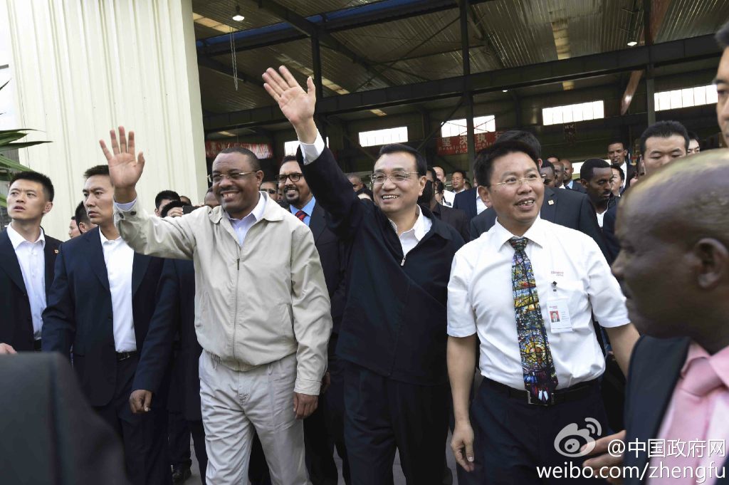 新華網北京5月6日電 據中國政府網微博報道,5日下午,李克強在埃塞總理陪同下參觀東方工業園。該園由中方投資興建,目前已為當地提供5000余個就業崗位。李克強說,中國愿意把可轉移的勞動密集型產業優先轉移到非洲,帶動當地就業,促進發展,增強非洲自我發展能力,造福雙方人民。
