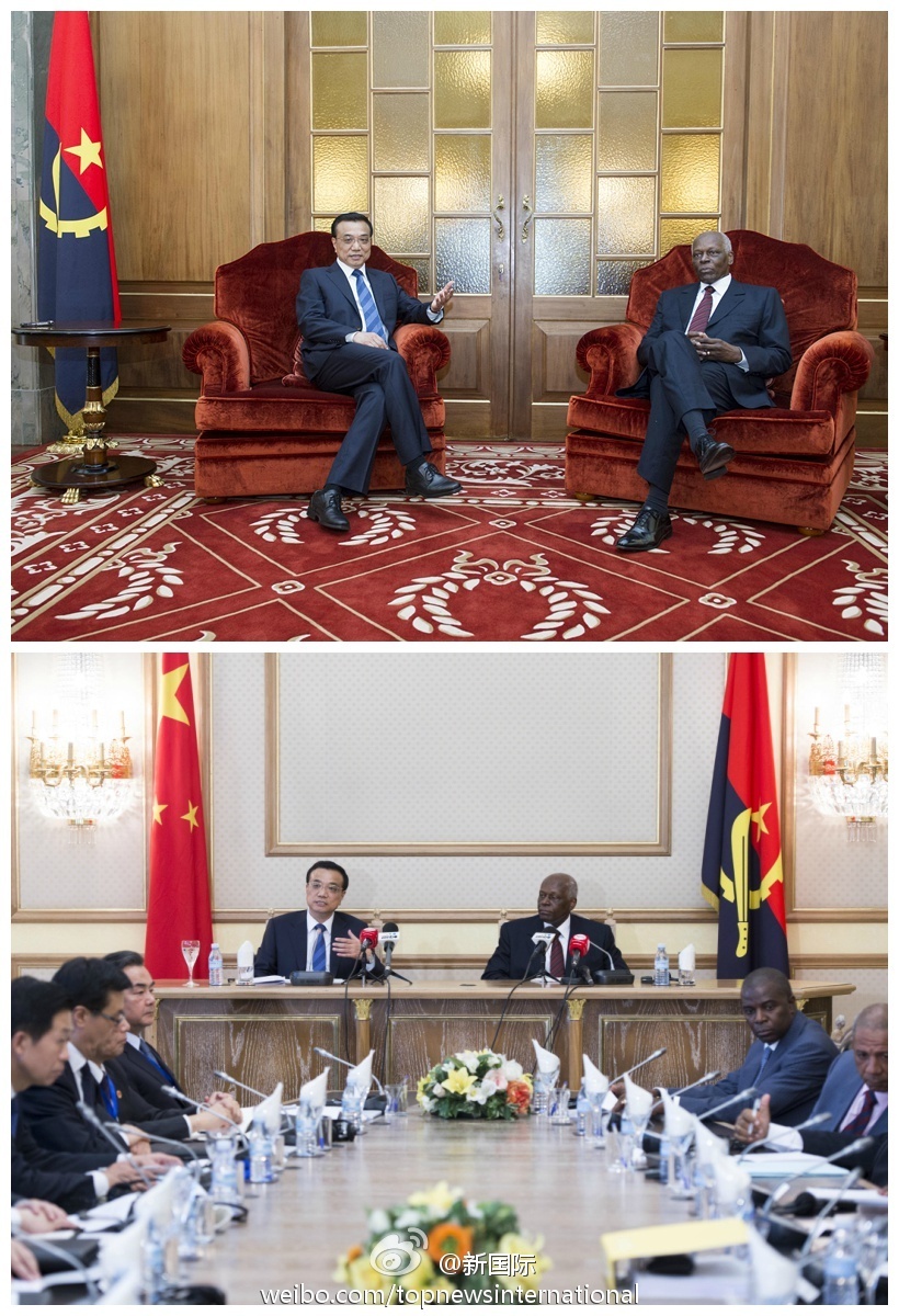 ????新華網北京5月10日電? 據新華社“新國際”微博報道,李克強總理9日與安哥拉總統多斯桑托斯會談時說,中方要求在安公民遵守當地法律、尊重當地習俗,希望安方繼續為中國投資提供便利,確保中方機構和人員安全。多斯桑托斯承諾保證在安中國公民和企業的工作生活安全。