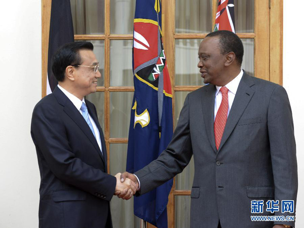 ????新華網內羅畢5月10日電(記者袁炳忠 明金維)國務院總理李克強10日上午在肯尼亞國家宮同肯總統肯雅塔舉行會談。