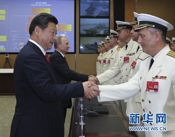 經兩國元首批準,“海上聯合-2014”中俄海上聯合軍事演習于5月20日至26日在中國東海北部??张e行。演習以海上聯合行動為課題,主要演練聯合防空、聯合反潛、聯合對海突擊、實際使用武器等戰術科目,提高兩國海軍共同應對海上安全威脅的能力。