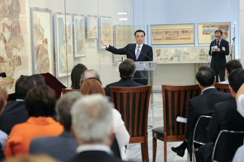 ??? 【李克強引中希先哲名言談兩國合作】李克強21日在伊拉克利翁博物館新館開館儀式上談到中希合作潛力時,引用古希臘哲學家赫拉克利特名言:“人不能兩次踏進同一條河流”與中國思想家孔子名言:“逝者如斯夫,不舍晝夜”。李克強說,中希合作機不可失、時不我待,期待兩國深挖潛力,合作之路越走越寬。