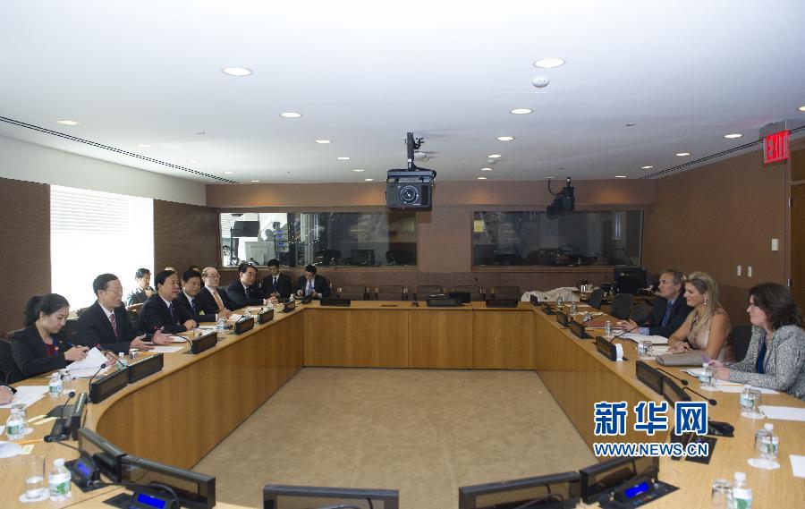 9月23日,出席聯合國氣候峰會的國家主席習近平特使、國務院副總理張高麗在紐約聯合國總部會見荷蘭王后馬克西瑪。 新華社記者 王曄 攝