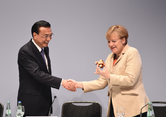 與默克爾共同出席第七屆中德經濟技術合作論壇時,李克強在致辭最后提起,這次默克爾總理陪他逛了當地一家超市,買了兩張明信片送給他的家人,而他也帶來一份禮物,是中國天津中德職業技術學院學生的作品,學生們希望他在公開的場合把這個禮物送給默克爾,以表達對中德制造業深度融合的期待。