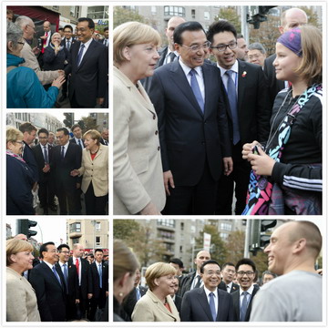 事件:李總理和默總理共同乘車前往出席中德經濟技術論壇,途中他們臨時停車,與在街頭的德國民眾親切交流互動。