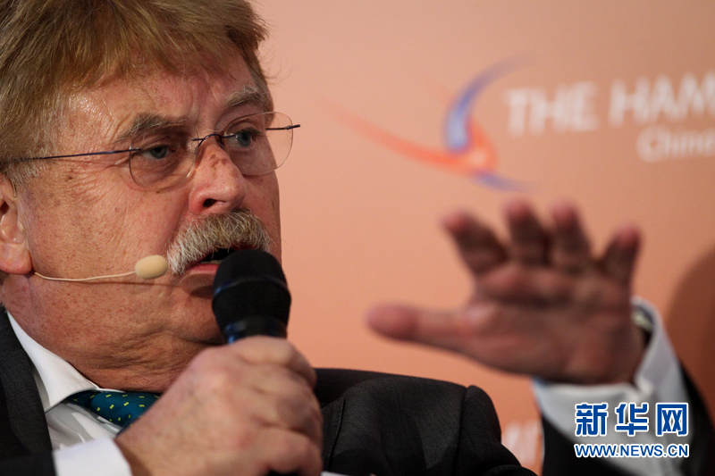 ??? 10月11日,在德國漢堡舉行的中歐論壇漢堡峰會上,歐洲議會議員、歐洲議會外交事務委員會主席?,?布洛克發言。中歐論壇漢堡峰會第六屆會議11日在德國漢堡閉幕。本屆峰會以“中國與歐洲相遇”為主題。來自中歐政治、經濟和學術界的500多位代表聚集在一起,探討中歐經貿合作未來趨勢、中國經濟的綠色發展等重要議題。新華社記者張帆攝