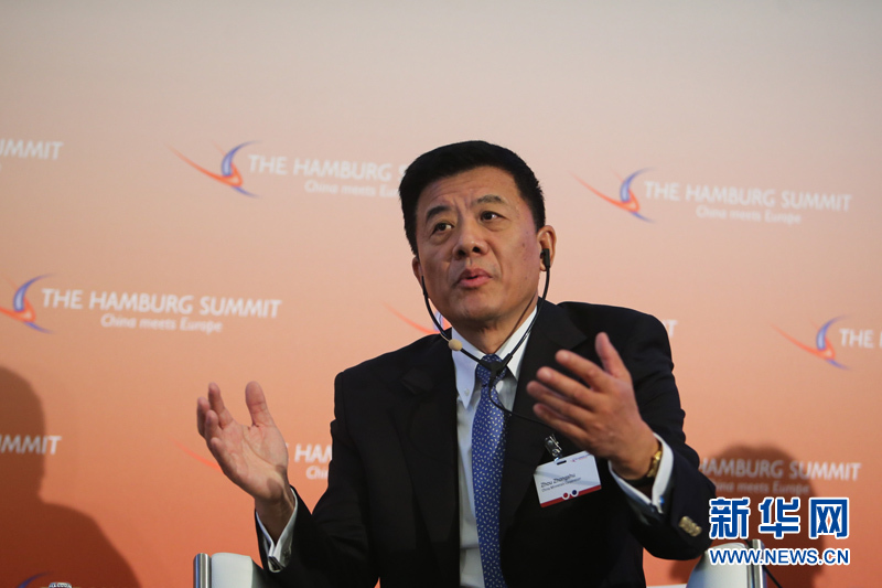??? 10月11日,在德國漢堡舉行的中歐論壇漢堡峰會上,中國五礦集團公司董事長周中樞發言。中歐論壇漢堡峰會第六屆會議11日在德國漢堡閉幕。本屆峰會以“中國與歐洲相遇”為主題。來自中歐政治、經濟和學術界的500多位代表聚集在一起,探討中歐經貿合作未來趨勢、中國經濟的綠色發展等重要議題。新華社記者張帆攝