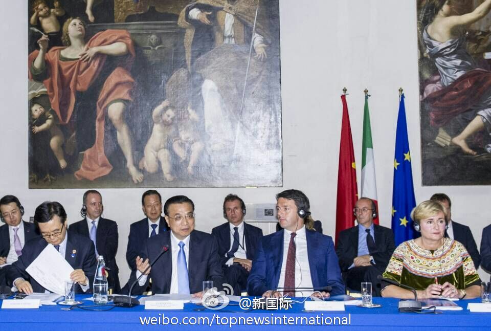 ????新華網北京10月15日電 據新華社“新國際”微博報道,中意兩國總理14日在羅馬共見兩國企業家代表,李克強說,企業界是推動兩國合作的主體和生力軍。當前中意都進入了依靠創新驅動的時代,這不僅需要科技創新,而且需要人文精神。希望兩國企業家爭做現代馬可·波羅,發揮互補優勢,推動企業間合作邁上創新的路程。