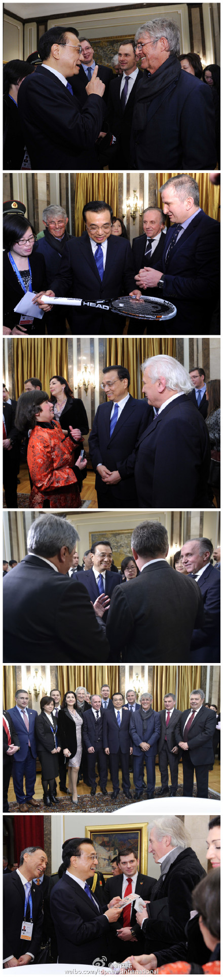 ??? 當地時間18日下午,李克強總理在塞爾維亞接受“貝爾格萊德榮譽市民”證書后,同在場的塞各界知名人士交流。他們既有為人熟知的電影演員、足球教練,也有歌劇表演藝術家和長期研究中國的漢學家??偫硗麄冇H切交談,現場氣氛友好熱烈。