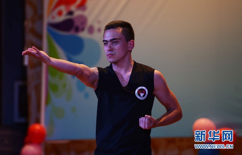 4月28日,在烏內務部文化宮禮堂,來自烏茲別克斯坦世界語言大學的DJAVDAT(中文名:張睿)在參加比賽。新華網記者 沙達提攝