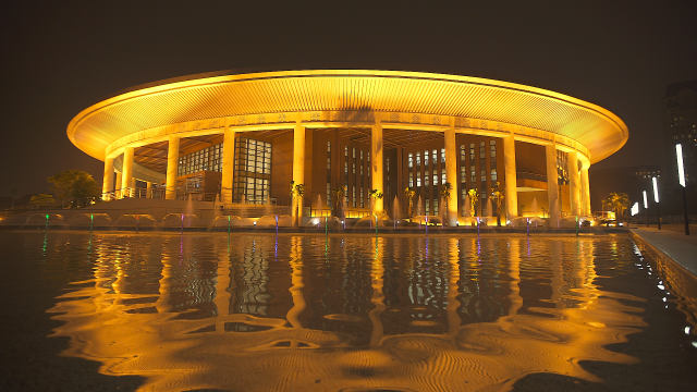 河內西南部開發區黎光道188號,中方援建的越中友誼宮坐落于此。這座建筑呈現蓮花造型,外部四角布有水池,營造出一種出水芙蓉的意境。白色的立柱環抱著柚木色的主墻,典雅精致。外圓而內方的設計,象征和諧、團結與圓滿,傳遞中越友誼長存、世代友好的深意。