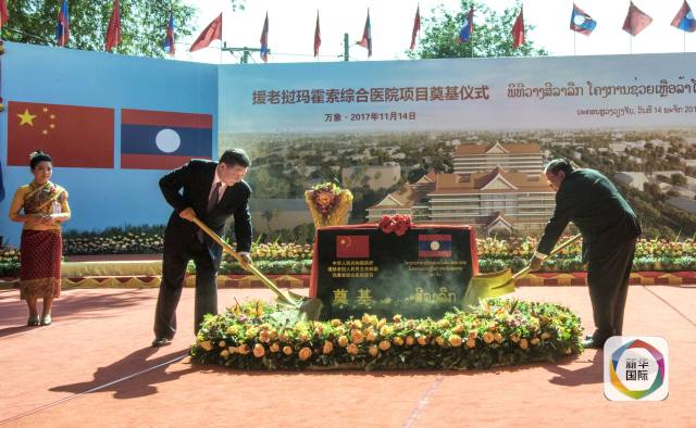 在萬象,習近平同老撾人民革命黨中央委員會總書記、國家主席本揚一道出席中國為老撾援建的民生領域標志性項目瑪霍索綜合醫院奠基儀式。