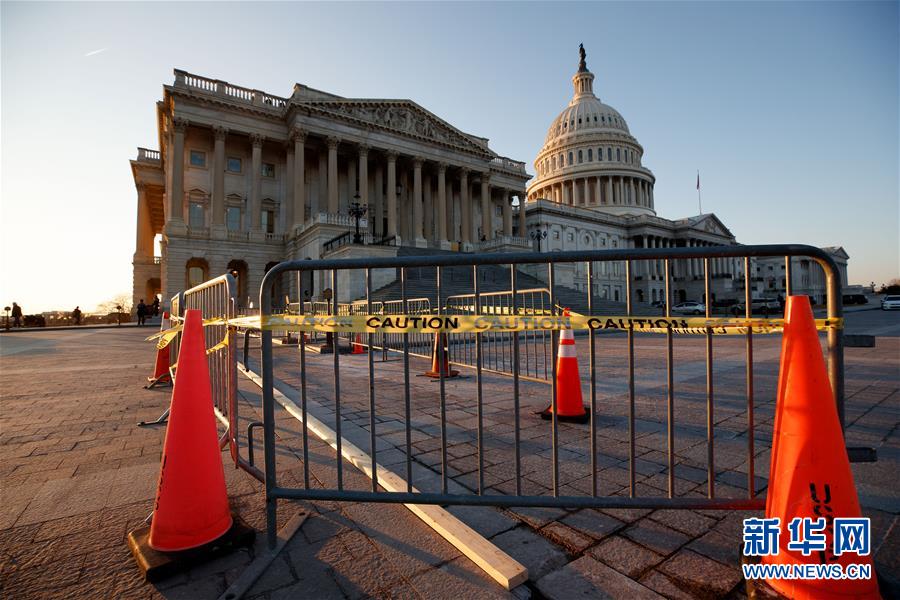 這是2月8日在美國華盛頓拍攝的國會山。由于美國國會未能在8日午夜前批準一項臨時撥款法案,美國聯邦政府被迫技術性“停擺”。美國聯邦政府預算向來是兩黨政治博弈的焦點和籌碼。由于兩黨未能在2018財年(始于2017年10月1日)開始前就本財年各聯邦政府部門的具體支出方案達成一致,過去幾個月聯邦政府一直依靠臨時撥款法案運營。新華社發(沈霆攝)