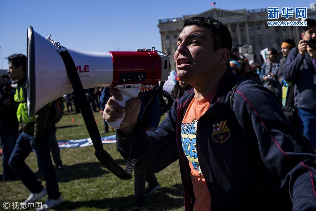 當地時間2018年3月5日,美國華盛頓,移民活動家在國會山舉行集會,抗議特朗普終結“夢想法案”計劃。(圖片來源:視覺中國)