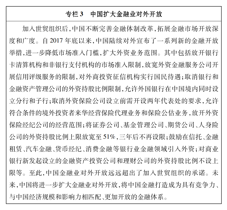 2001年中國加入世貿組織①以來,不斷完善社會主義市場經濟體制,全面加強同多邊貿易規則的對接,切實履行貨物和服務開放承諾,強化知識產權保護,對外開放政策的穩定性、透明度、可預見性顯著提高,為多邊貿易體制有效運轉作出了積極貢獻。