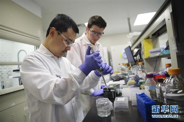 7月9日,在美國賓夕法尼亞州切斯特縣,方達醫藥公司研究人員在實驗室里工作。新華社記者王迎攝