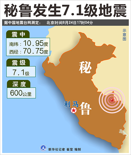 新華社利馬8月24日電? 秘魯東部與巴西交界地區24日發生7.1級地震,目前尚無人員傷亡和財產損失報告。