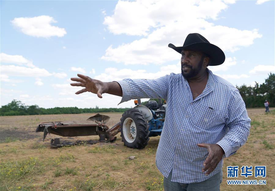 5月15日,在美國弗吉尼亞州的巴斯克維爾,豆農約翰·博伊德在自己的農場接受采訪。新華社記者 劉杰 攝