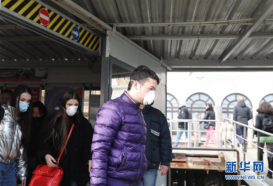 2月23日,在意大利威尼斯,戴著口罩的游客準備乘坐公交船。 意大利政府23日說,意大利目前共有152人確認感染新冠病毒,其中3人病亡,1人治愈出院。確診病例主要集中在該國北部4個大區。 新華社記者 程婷婷 攝