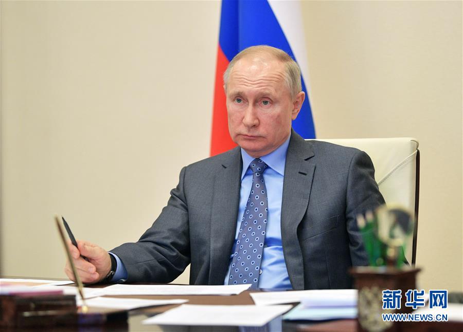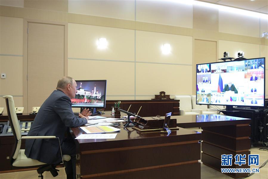 4月1日,在位于俄羅斯莫斯科州的新奧加廖沃總統官邸,俄總統普京與俄政府成員舉行視頻會議。新華社/衛星社